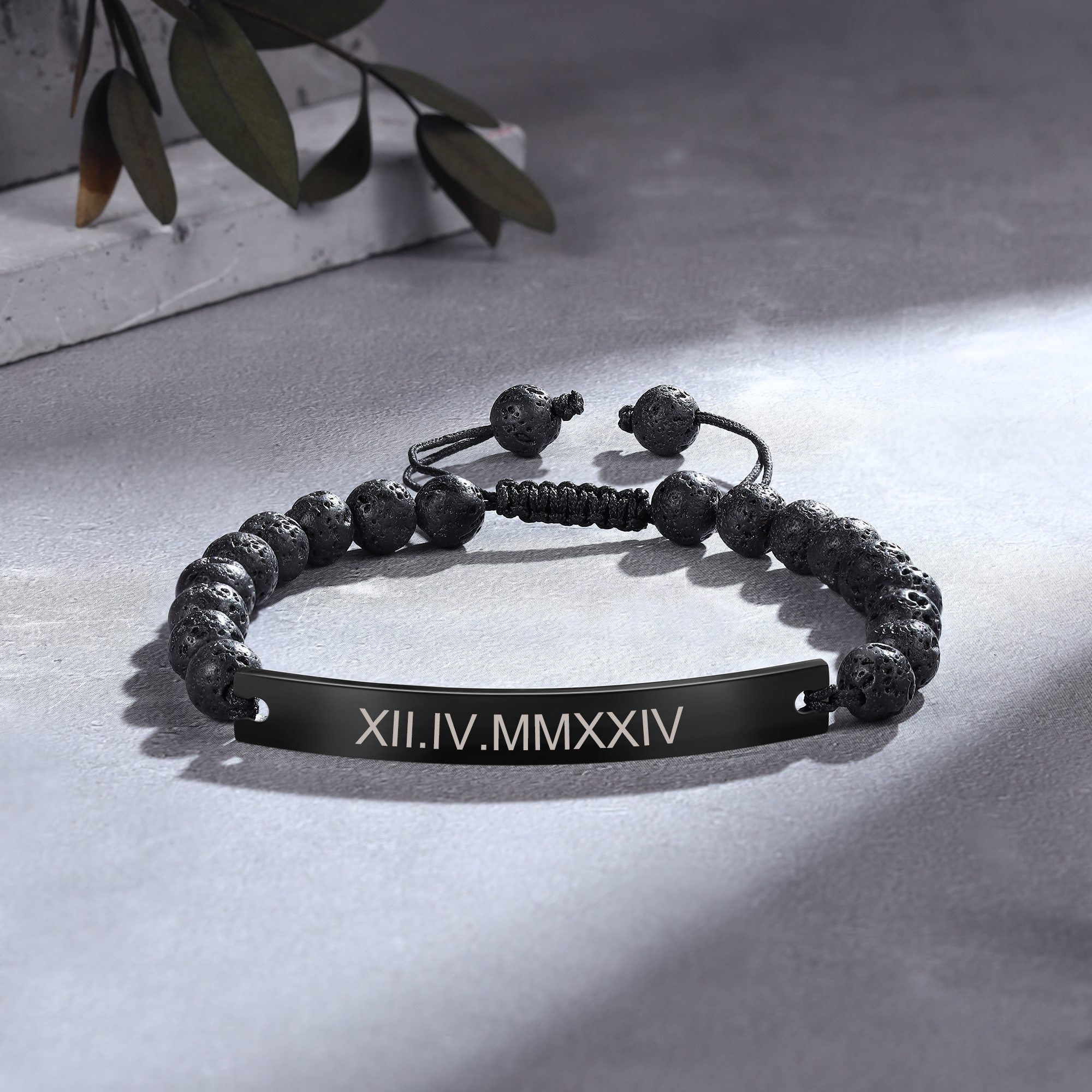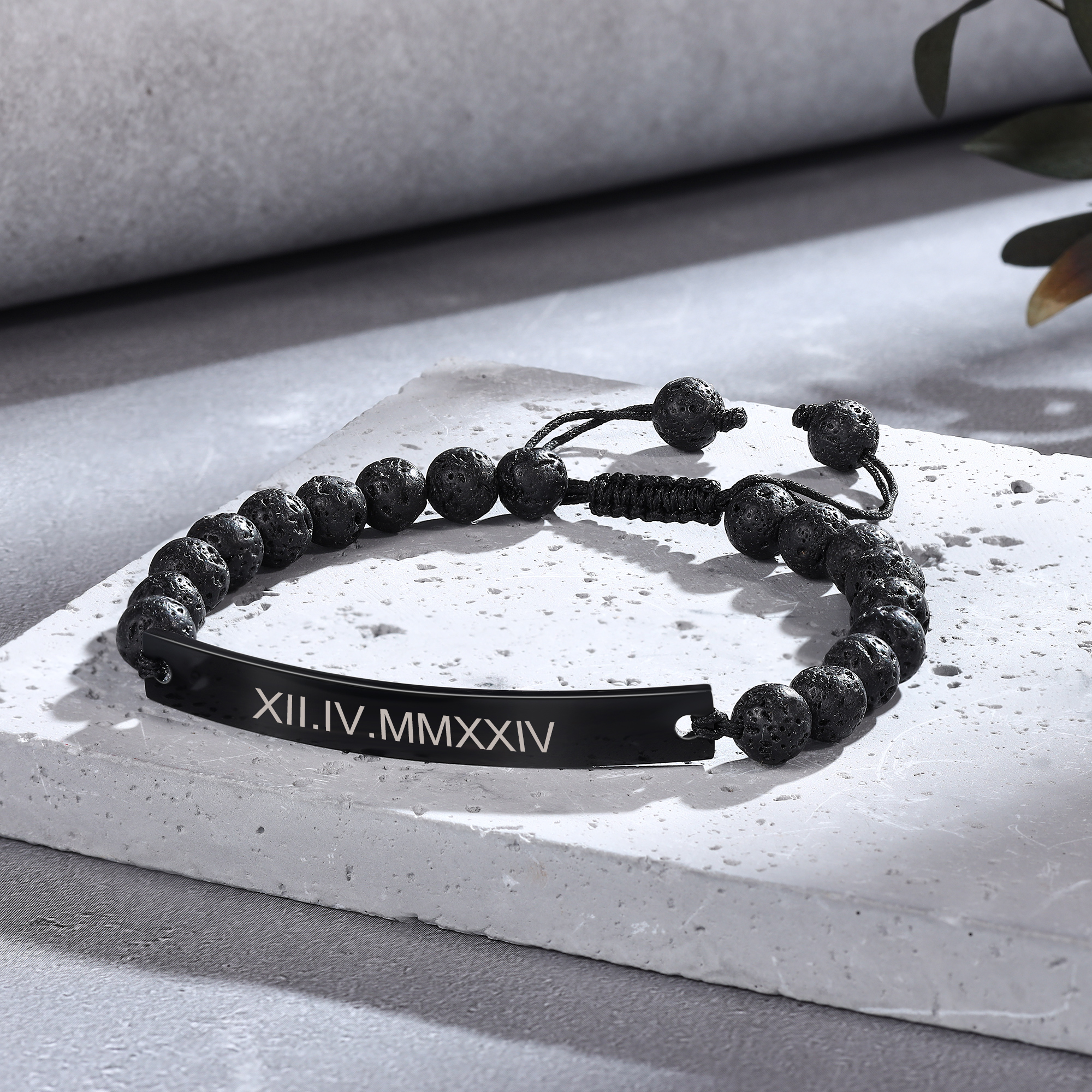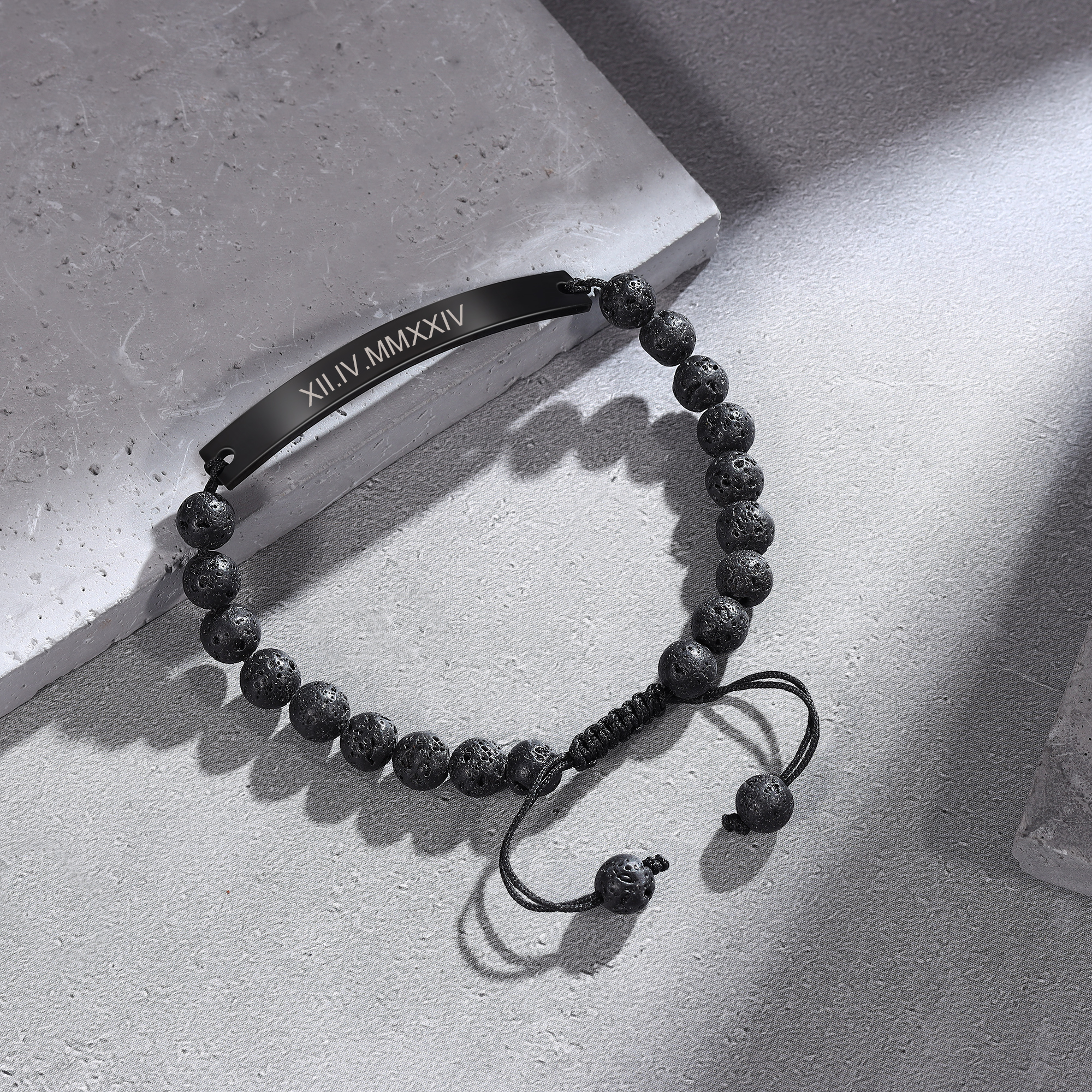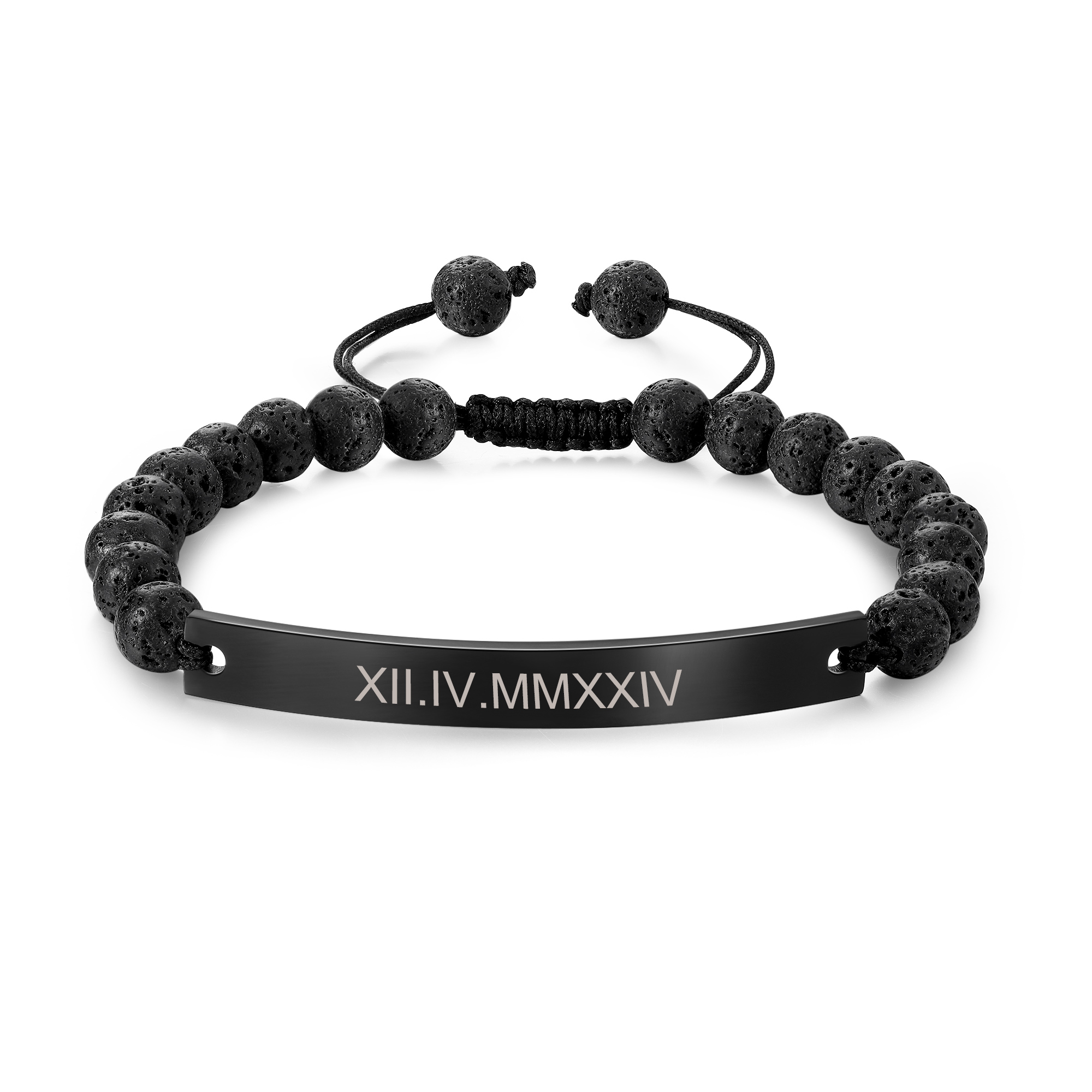 The adjustable lava rock bead chain ensures a comfortable and secure fit, while the durable black finish offers a timeless, masculine look that will stand up to daily wear. Whether you’re looking for a unique gift for him or a personalized piece to wear every day, this bracelet is an excellent choice that combines raw style with a personal touch.