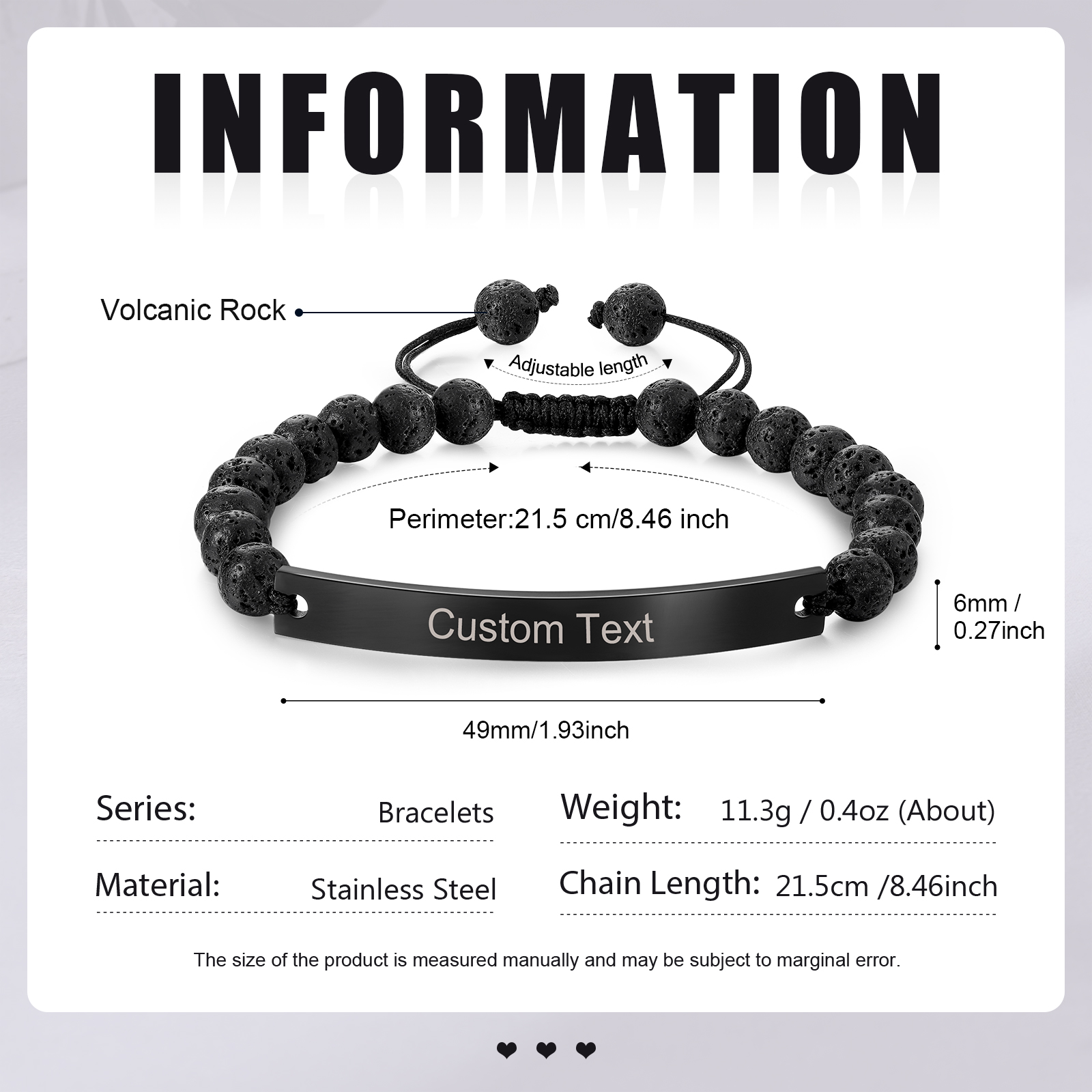 • Adjustable Fit: An adjustable lava rock bead chain ensures a perfect and comfortable fit.