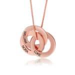 Speaking to the timelessness of enduring love, the Russian Ring Necklace is composed of three interlocking bands, symbolizing the past, present, and future. A modernized piece you can wear close to your heart each day, this meaningful design makes for the perfect gift for yourself or a loved one. Each ring in the pendant can be personalized with an inscription of the names you hold closest.