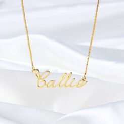 The delicate chain holds a customizable name pendant in an elegant signature-style font, making it an ideal gift for her or a special piece to add to your own collection. If you love this design, you’ll also adore our other Script Name Necklace.
