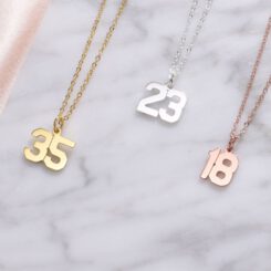 Inspired by the instantly recognizable varsity-style numbers synonymous with baseball, football, and softball jerseys, this Numbers Necklace applies a modern lens to a typically sporty design detail. Available in three opulent colors – from classic gold and silver to a contemporary rose-gold hue – this baseball number necklace is the perfect jewelry gift idea for a loved one to commemorate a special date, lucky number, or even an angel number.